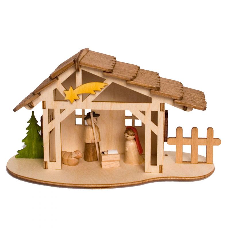 Stellen Sie mit Ihrer Familie die Weihnachtsgeschichte nach und bauen Sie Ihre eigene kleine Krippe.In diesem Bastelsatz ist alles enthalten, was Sie benötigen.Auf Wunsch können Sie das Set auch mit unserem Beleuchtungsset Artikel 10113 kombinieren und so eine angenehm warme Stimmung erzeugen.Größe ca. 18 x 10 x 9 cm