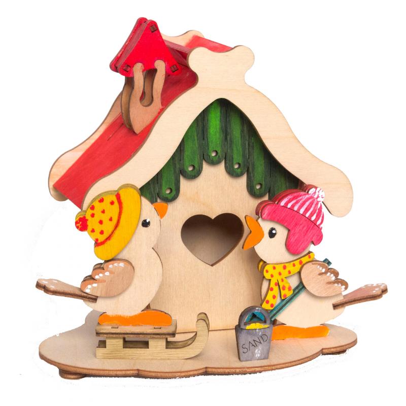 Da haben es wohl 2 Vögeln nicht rechtzeitig in den Süden geschafft. Das Bastelset Rauchhaus mit Vögel ist schnell zusammengebaut und kann mit einer Standard-Räucherkerze betrieben. Mit Farbe oder Stiften kann es noch farblich angepasst werden.
