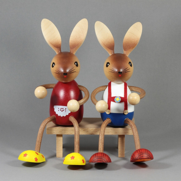 Kuhnert Hasenpaar sitzend auf Bank, Krummbein